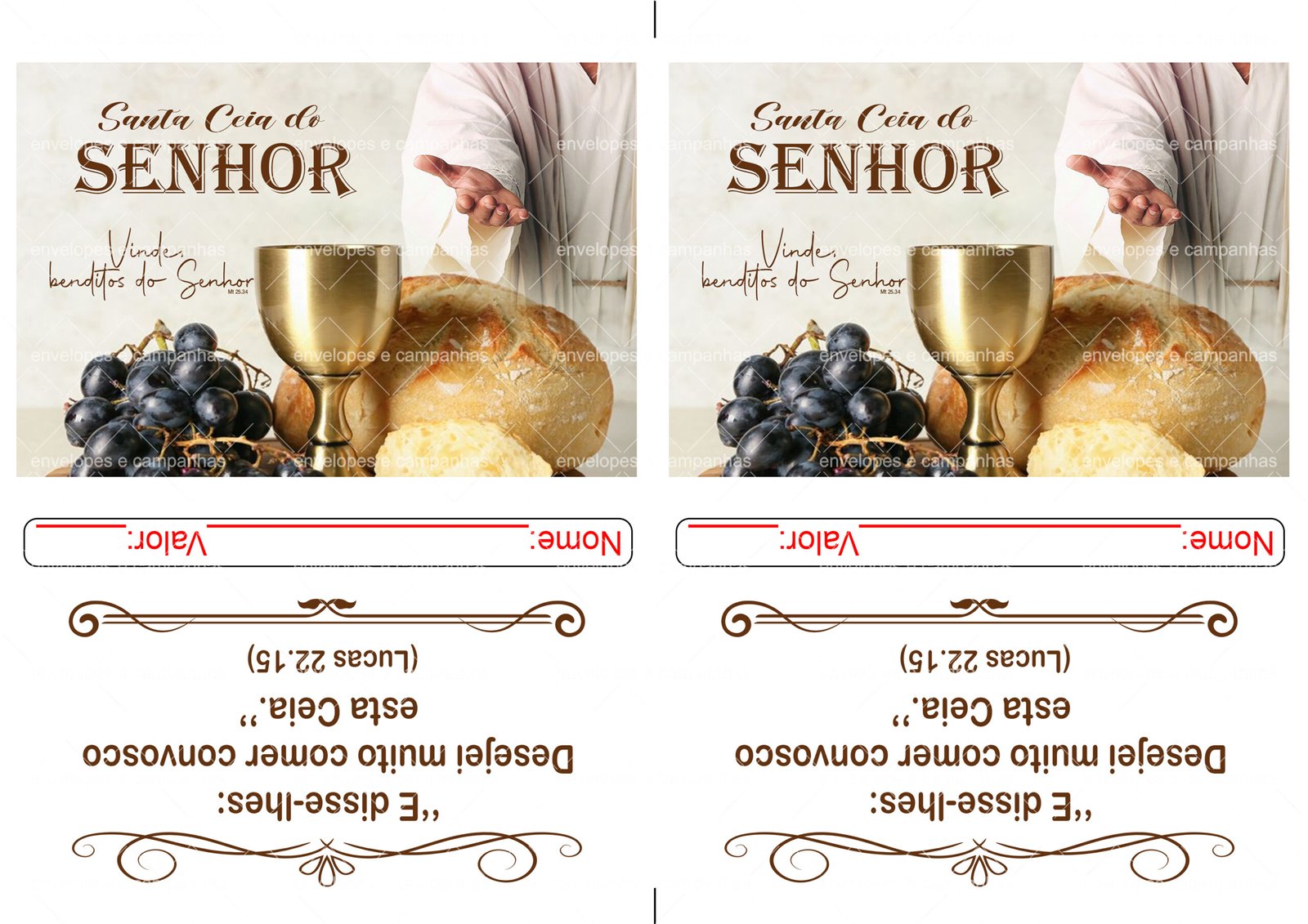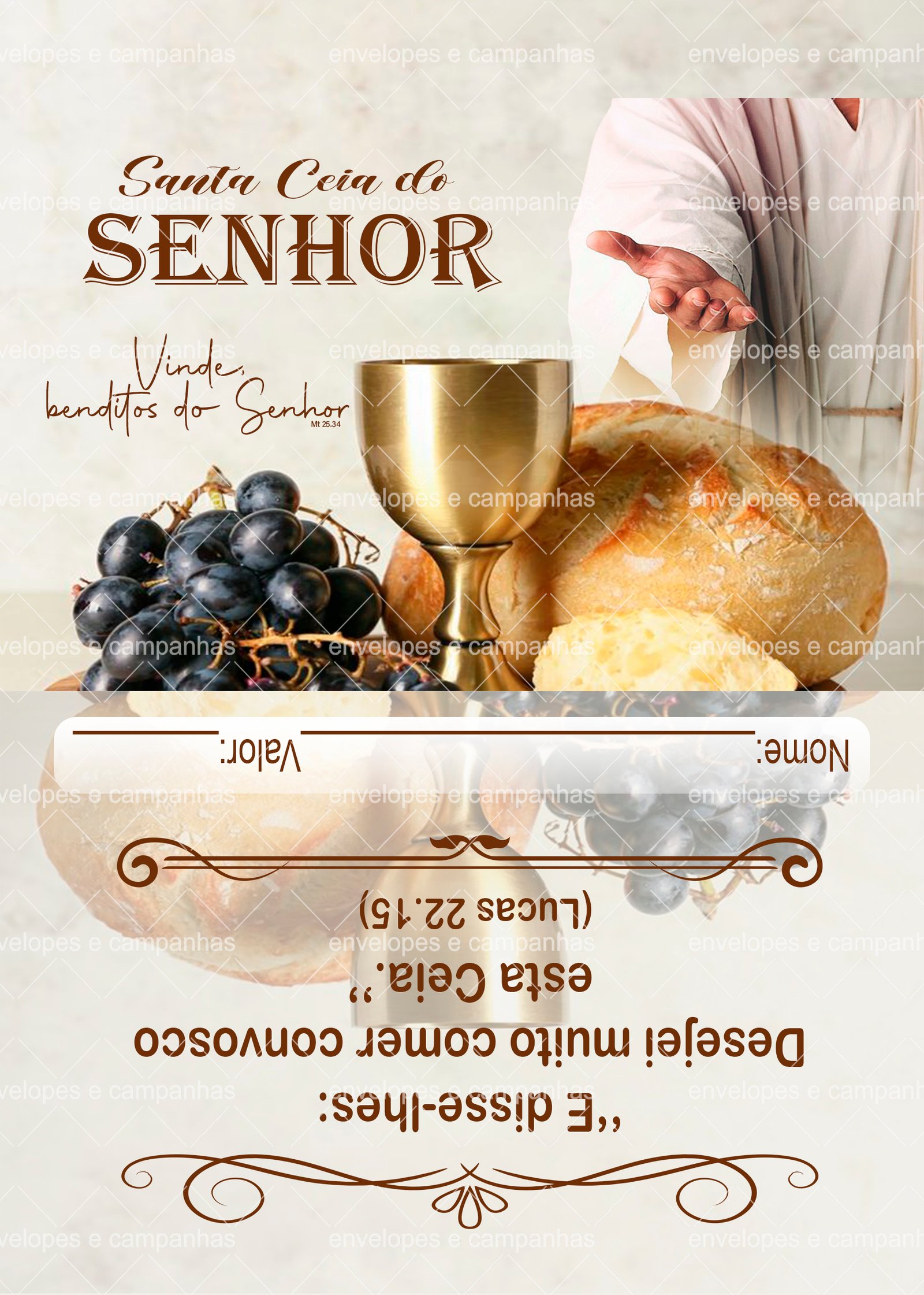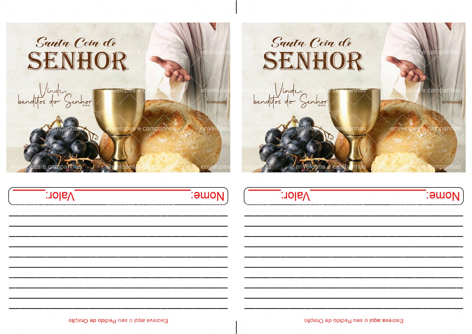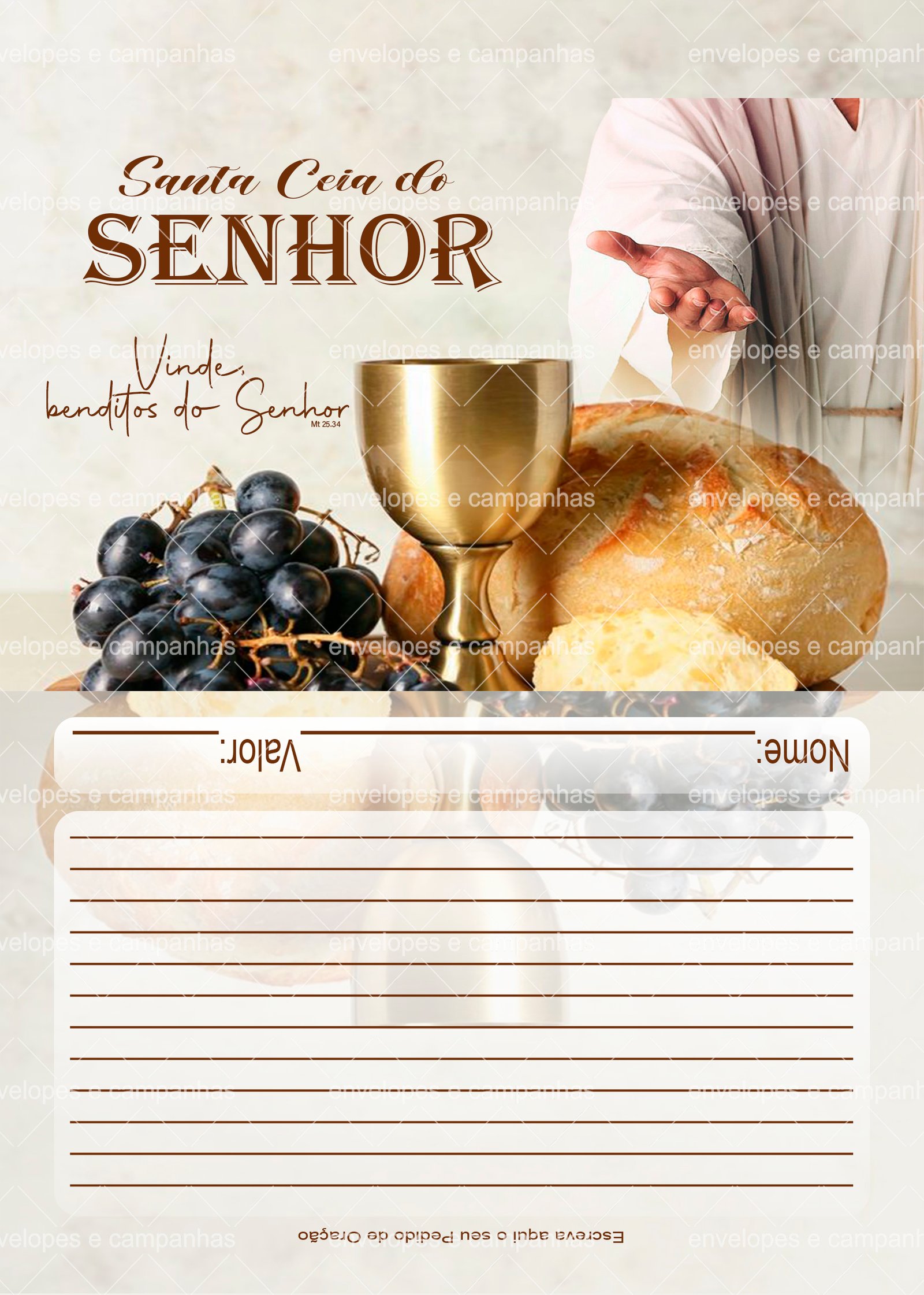 Envelope Santa Ceia Vinde Benditos do Senhor 01 (Envelope 1/2 Ofício ou 2 numa folha A4)